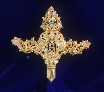 – La Hermandad de Pasión y Muerte estrena un nuevo puñal dorado barroco con circonitas para la Virgen del Desconsuelo y Visitación. Posee la «M» de María en su centro. Diseño de Orfebrería San Juan, ha sido donado por Ángel Héctor Rodríguez.