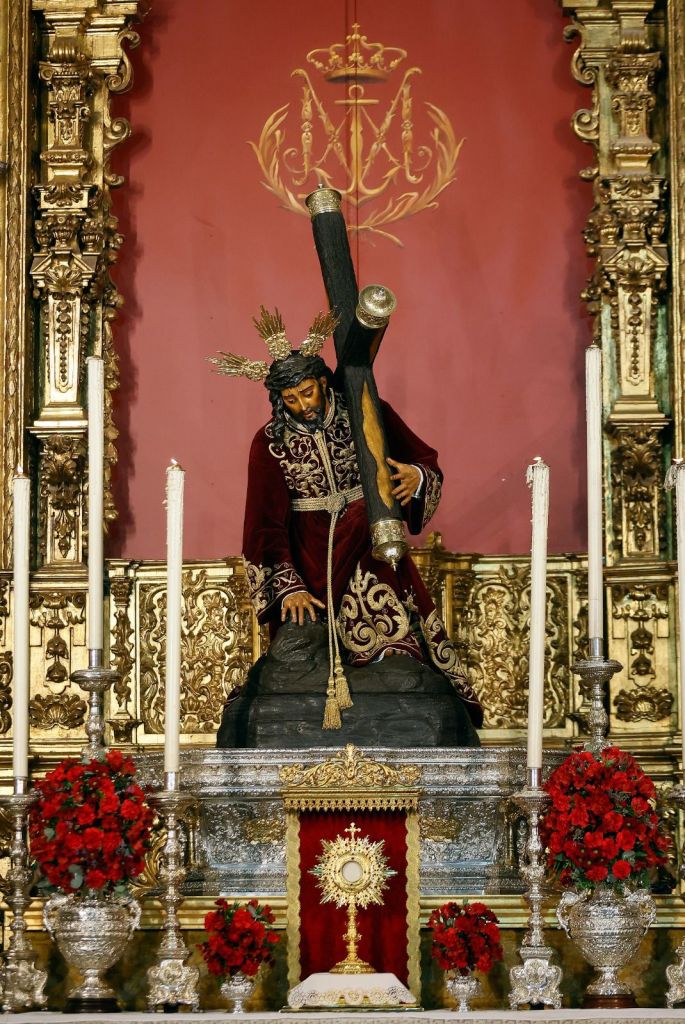 El Santísimo Cristo de las Tres Caídas de la Hermandad de la Esperanza de Triana cuenta con una nueva túnica donada por la familia Pérez-Solano. Realizada en soporte de terciopelo morado por el taller de Jesús Rosado, es diseño de Francisco Javier Sánchez de los Reyes. Se inspira en una antigua que tuvo el Señor a principios del siglo XIX.