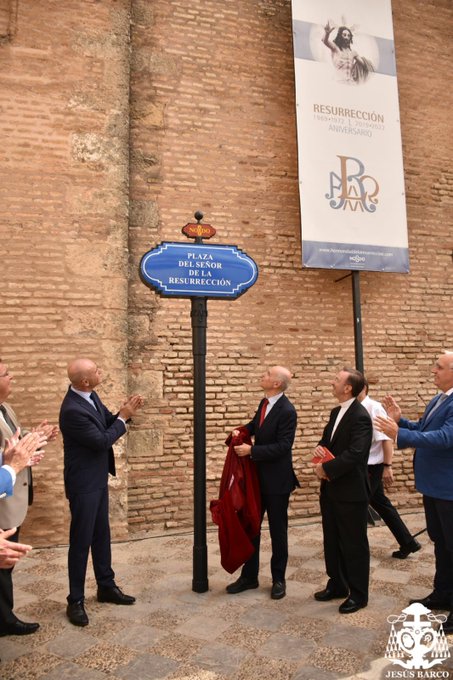 En la mañana de este lunes se ha descubierto la placa que denomina al espacio que se ubica ante la iglesia de Santa Marina como «Plaza del Señor de la Resurrección».
