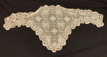 La de toalla cuenta con puntas rematadas en abanico y dibujo floral con roleos, presentando el mismo diseño que una primitiva mantilla que solía vestir la dolorosa en los años 50-60. Por su parte, la mantilla de tres picos, es de diseño floral en punta, entolado a un triángulo central con motivos geométricos, combinando en diseño y color con la mantilla anterior para completar el tocado de la Virgen.