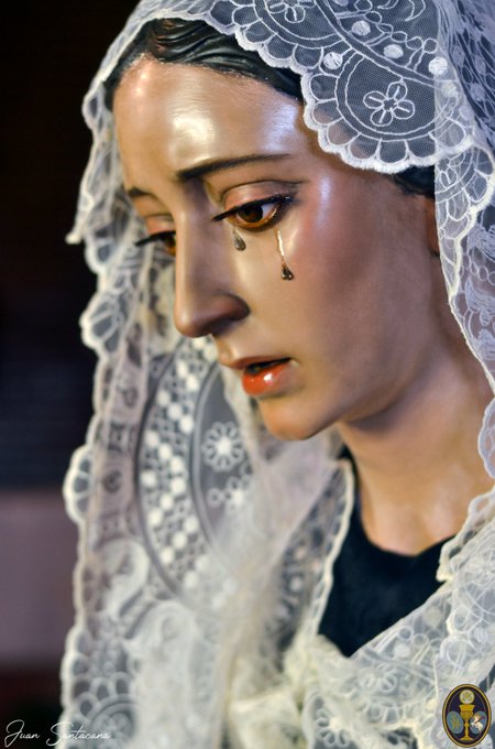 La Hermandad del Divino Perdón ha repuesto a la dolorosa este viernes tras la intervención acometida por su autor, José Antonio Navarro Arteaga, que ha reestablecido policromías y nuevas articulaciones sobre esta talla bendecida en 2002.
