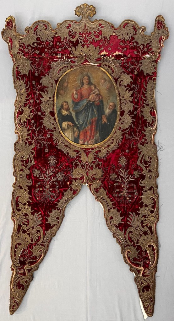La Hermandad de la Macarena continúa con la restauración integral de todo su patrimonio con la intervención del simpecado de la Virgen del Rosario, que será llevada a cabo por el taller dedicado a los tejidos antiguos CYRTA. El prestigioso taller ha realizado trabajos tan complejos en los últimos años como las intervenciones del terno azul de la Virgen de la Oliva de Salteras, el palio sacramental de la Hermandad de la Candelaria o una de las tocas de sobremanto de la Esperanza Macarena.