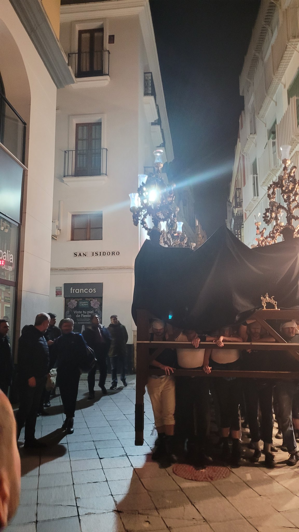 Ayer en torno a las 11 de la noche la Hermandad del Cerro del Águila trasladó en un camión el paso de misterio del Santísimo Cristo del Desamparo y Abandono al centro de Sevilla, para realizar una prueba por la calle Francos y así comprobar si la reordenación del Martes Santo es posible.