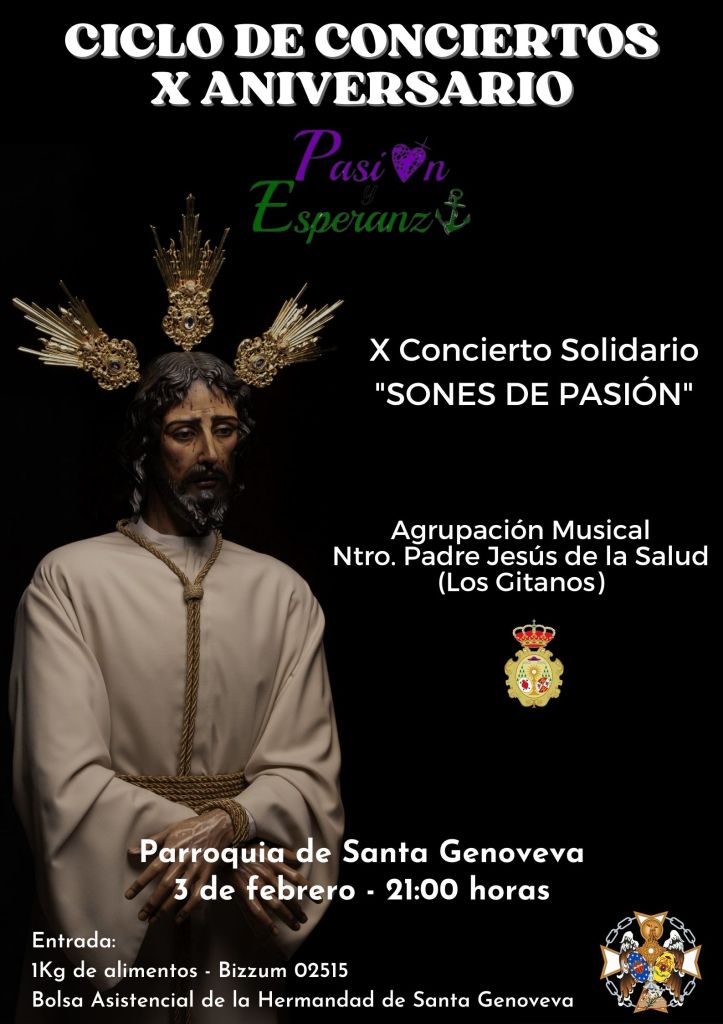 Será en la parroquia de Santa Genoveva y en pro de la Bolsa de Caridad de la Hermandad de Santa Genoveva, por lo que solicitamos 1kg de alimentos a todos los asistentes. Se podrá, si lo prefieren, colaborar con un Bizzum al 02515. La corporación enclava este acto dentro de su X Concierto Solidario ‘Sones de Pasión’.
