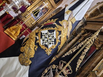 La Hermandad de Montesión ha bendecido la nueva bandera dominica, obra de Joaquín Salcedo, realizada sobre seda blanca y negra. Recupera diseño original y será estrenada el próximo Jueves Santo. Cuenta con bordados de finales del siglo XIX y escudo dominico en seda.