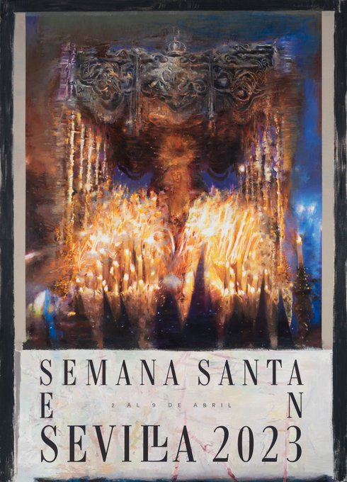 La simbología es clara, pues se realiza sobre papel emborronado de ceras y rotuladores, con tipografía bucle de estudio Ale Rojas. La Semana Santa comprendida como un paso por la ciudad, donde los tonos amarillos, la cera y los crespones negros actúan como estrellas fugaces, fusionándose con los capirotes azules que anteceden al palio.