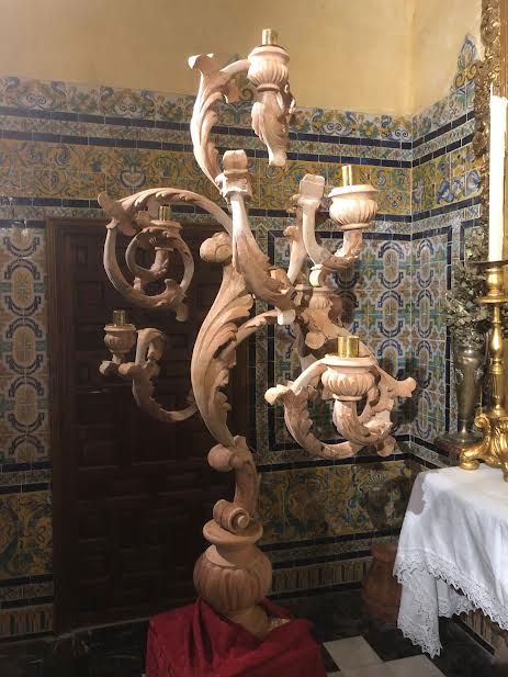 Están confeccionados en madera de cedro real y siguen una línea barroca con hasta seis puntos de ñuz cada uno. Parten de un diseño de Francisco Javier Sánchez de los Reyes.