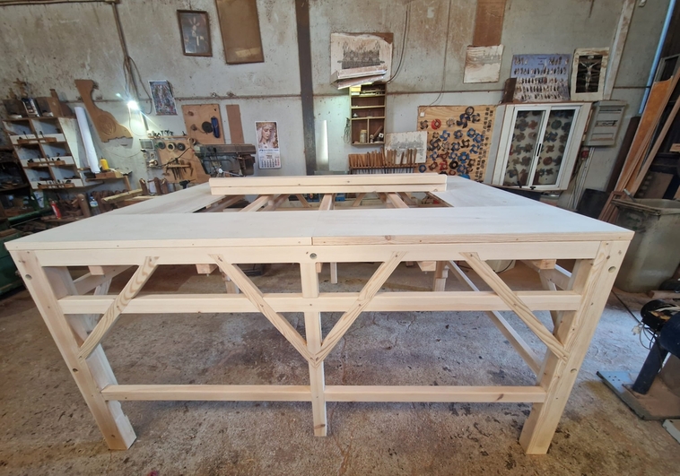 El taller de Enrique Gonzálvez viene trabajando en ella durante los últimos meses. Cuenta con las mismas medidas que la anterior, con seis zancos, cinco trabajaderas y más espacio interior. El proyecto es un consenso entre la Asociación y el Cabildo Catedral.