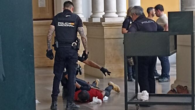 Tras el intento de los operarios por desalojarlo del lugar, un guardia civil jubilado intervino para que el individuo, en estado de embriaguez (según apunta ABC de Sevilla) abandonase el templo. Finalmente, tres patrulleros de la Policía Nacional se personaron para sacarlo y detenerlo en el atrio. Posteriormente fue atendido y trasladado a un centro sanitario.