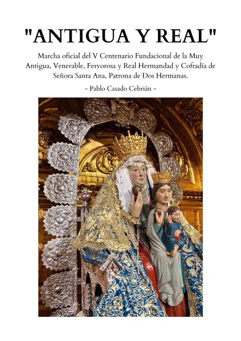 La Banda de Música Santa Ana de Dos Hermanas ha comunicado que estrenará una nueva marcha con motivo del V centenario fundacional de la Hermandad de Santa Ana de Dos Hermanas. Se titular ‘Antigua y Real’, y es obra del compositor y miembro de la formación musical, Pablo Casado Cebrián.