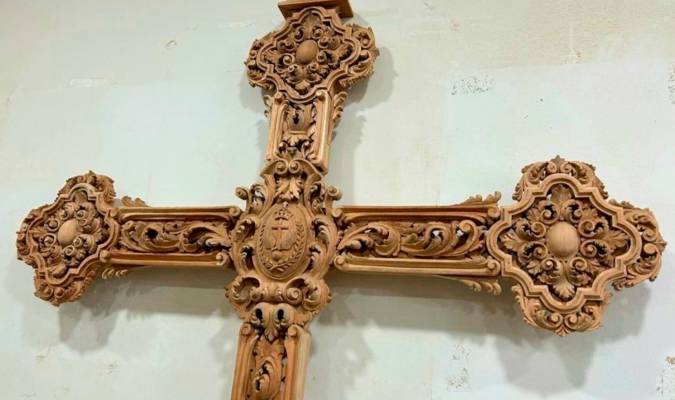 La cruz estará tallada a doble cara por el tallista Francisco Verdugo, dorada en oro fino de ley y ejecutada por Artesanía del Dorado Hermanos González. Las ráfagas, INRI y asas serán del taller de Alejandro Marmolejo. En el enrejado le dará un efecto de transparencia y aligerará el peso.