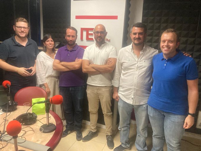 Carlos Berlanga, Mayordomo Segundo de la Hermandad de los Gitanos y una representación de la BM Dos Hermanas ‘Santa Ana’ conformada por José Colomé (Director), Antonio Barba (Presidente) y Fran Lozano (Subdirector) nos visitó. También entrevistamos a Manuel Román, autor de la marcha ‘Pasión y Esperanza’.