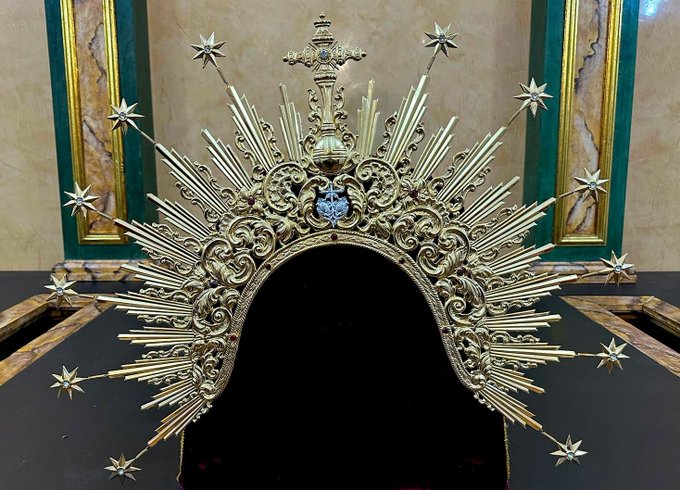 La Hermandad de la Milagrosa ha presentado y bendecido la diadema remozada de la Virgen del Rosario, que se ha enriquecido con un baño de oro de 24 quilates y cambiado el antiguo escudo por uno actual. Se ha mantenido en plata y se le han añadido piedras preciosas. Los trabajos los ha acometido el taller de Orfebrería Andaluza.
