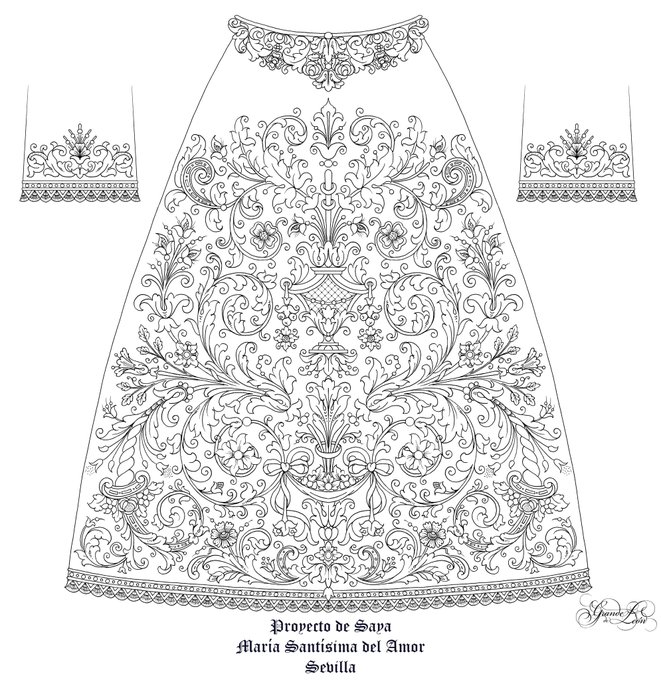 La Hermandad de Pino Montano ha presentado este sábado el diseño de la nueva saya para María Santísima del Amor que ha diseño José Antonio Grande de León con motivo del 25 aniversario de la hechura de la dolorosa.