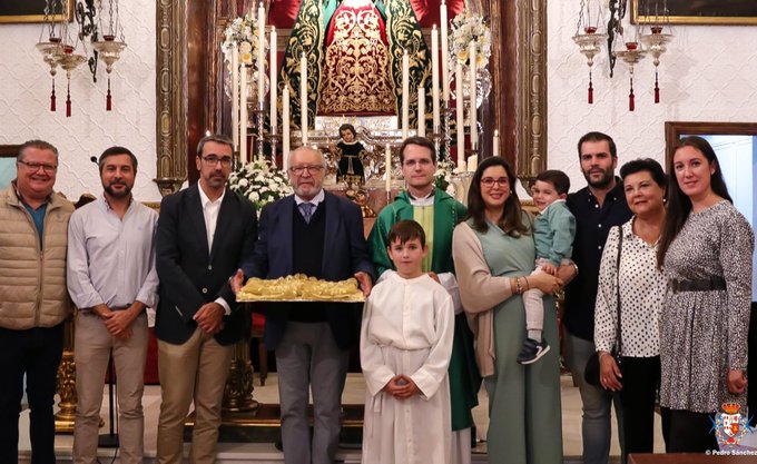 El pasado 22 de octubre la Hermandad de la Trinidad recibió una nueva toca de sobremanto para Nuestra Señora de la Esperanza que ha diseñado Alfonso Aguilar y que ha bordado Ramón Villarreal, quien también es donante de la misma.