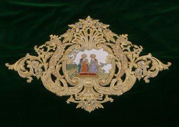 La Hermandad de la Esperanza de Triana ha restaurado los faldones de su paso de palio de manos del taller de Francisco Carrera Iglesias ‘Paquili ‘y Pepi Maya. En todo momento se han seguido las técnicas recomendadas por el IAPH. Las primitivas cartelas se han sustituido por unas nuevas bordadas en hilo de seda sobre pinturas realizadas por el taller de Daroal.