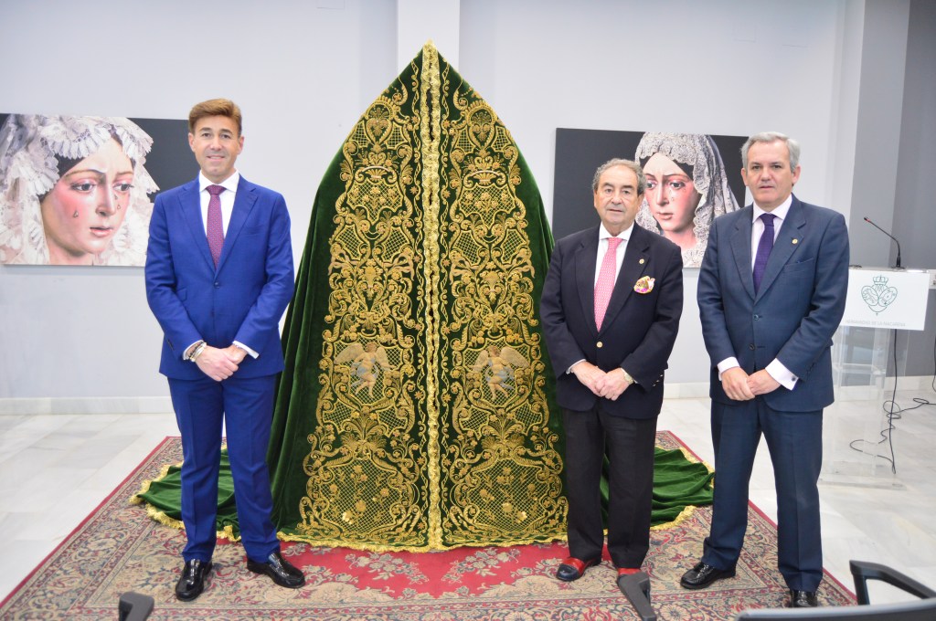 El manto enriquece el ajuar de la Virgen del Rosario, aunque en sus inicio fue diseñado para la Virgen de la Esperanza. La pieza cuenta por un diseño frontal extraordinario, en el que aparece un ángel a cada lado siguiendo el diseño del manto de malla que diseño Juan Manuel Rodríguez Ojeda entre 1899 y 1900.
