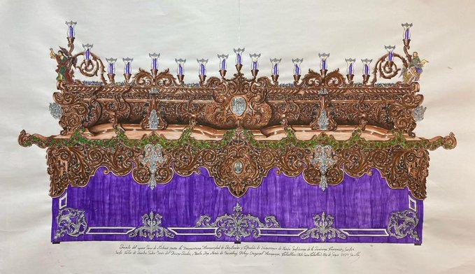 El nuevo proyecto del paso procesional será realizado por el Taller de Arte Sacro Caballero. Será en caoba, con candelabros de guardabrisas y faldones en terciopelo morado.