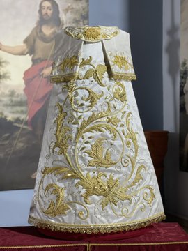 Las piezas han sido ejecutadas por fieles de la corporación y montada y finalizada sobre soporte de tisú de plata por el taller de bordados de José Librero. La estrenará, previsiblemente, en la salida procesional del próximo 16 de marzo.