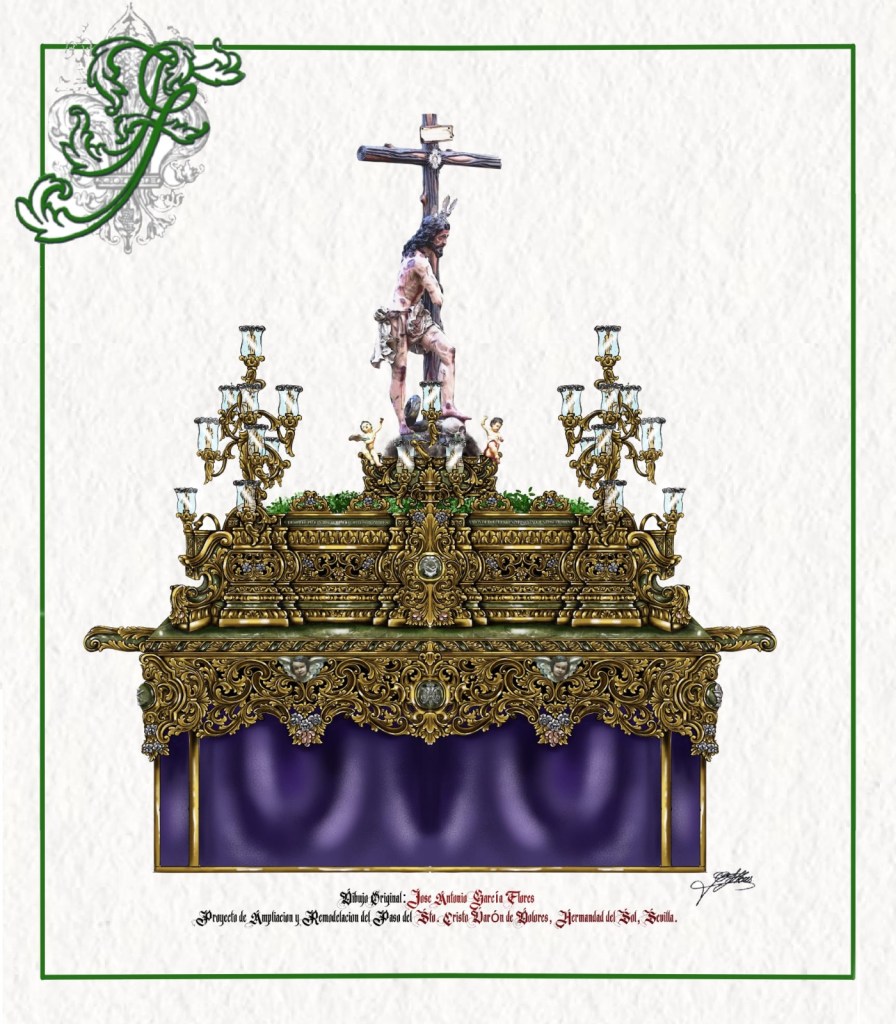 El objetivo es ir presentándolo paulatinamente cada Semana Santa. Las tareas consistirán: decapado del aso actual, ejecución de nueva parihuela, ampliación de la canastilla, bastidores interiores, ampliación de los respiraderos, nueva peana de carpintería y talla posterior, tallas de las esquinas y de las cartelas, molduras y adornos de las esquinas de los respiraderos.