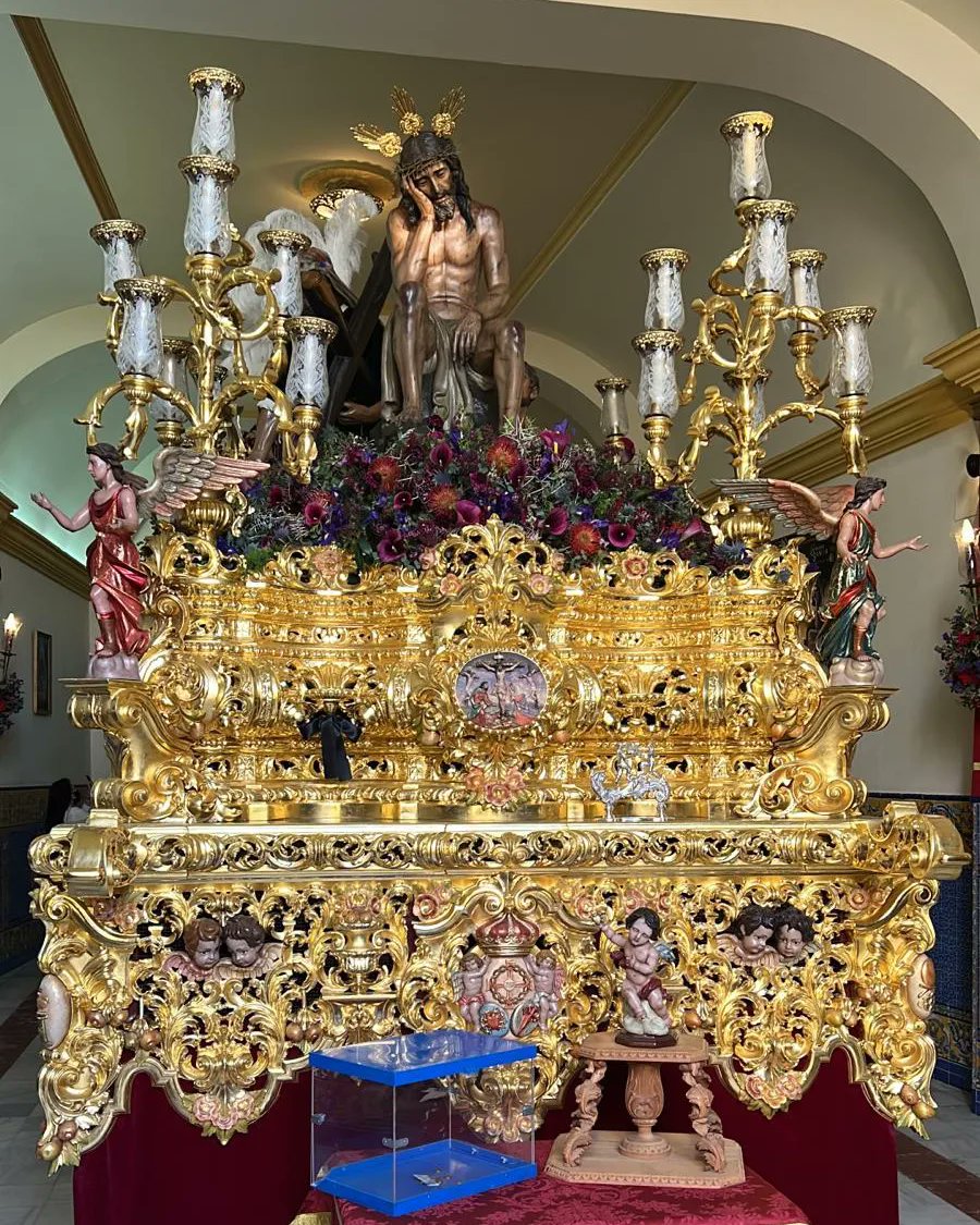 El paso es obra de Antonio Ibáñez y Joaquín Pineda Fernández estrenado en 1992. Posee unas medidas de 4,20 metros de largo y 2,40 de ancho pudiendo calzar 35 costaleros. En las cartelas superiores de la canastilla las protagonizan los cuatro evangelistas y cuatro momentos de la pasión que se escenifican en la localidad de Mairena del Alcor, siendo obras de Antonio Gavira Alba. Además en cada esquina del canasto se posa un arcángel obra del escultor Juan Ventura.