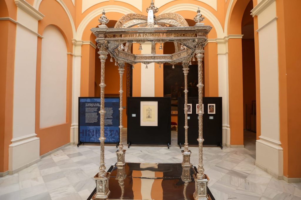 La Hermandad de la Hiniesta ha presentado el nuevo baldaquino que cobijará a la Virgen de la Hiniesta Gloriosa desde la próxima procesión. La pieza es obra de Orfebrería Ramos bajo diseño de Javier Sánchez de los Reyes y ha sido presentada en el trascurso de la exposición ‘Santa María de la Hiniesta, Patrona y Bienhechora de Sevilla’ en la que se podrá ver la nueva pieza así como el numeroso patrimonio de la corporación.