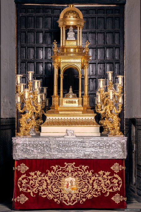 Cerrando la Procesión la Custodia de asiento, restaurada para la ocasión por Enrique Castellanos.