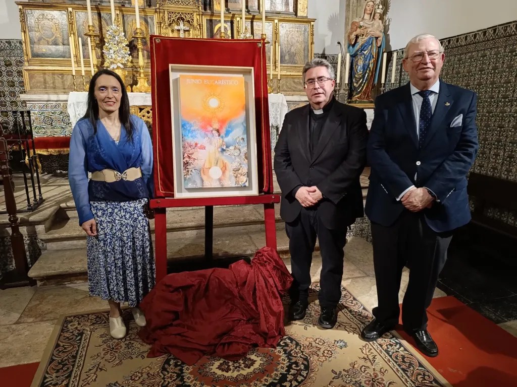 El Consejo de Hermandades y Cofradías de la ciudad de Sevilla ha presentado este lunes en la Capilla de Santa María de Jesús el cartel anunciador del Junio Eucarístico 2024, obra de Isabel Sola. Una obra que está realizado sobre tabla con tintas acrílicas de aerografía, pintura acrílica, acuarela, pasta de modelado y resina epoxi.