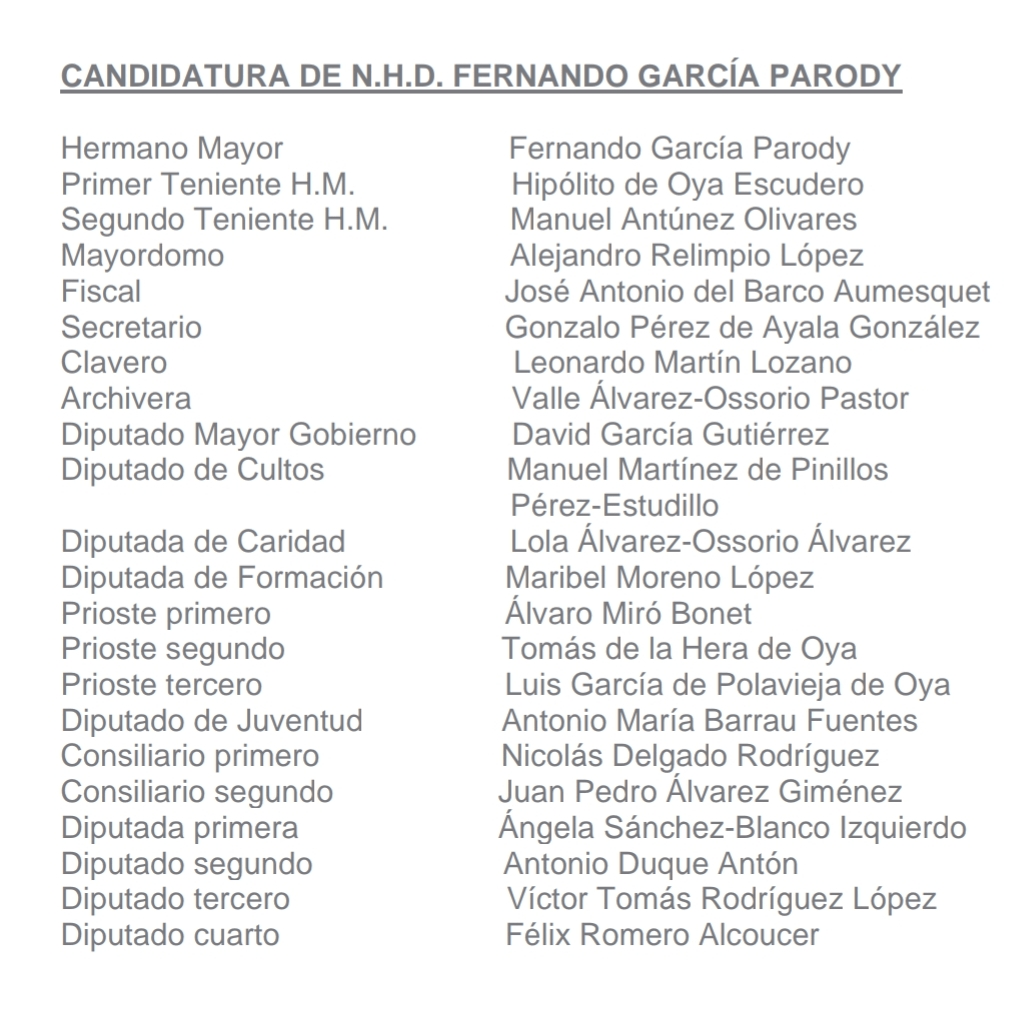 La junta de gobierno de la Agrupación Parroquial de la Caridad de Santa Aurelia ha anunciado la no renovación de Pablo Rodríguez como capataz del palio, al cual le sustituirá Rogelio Jesús Satorres.