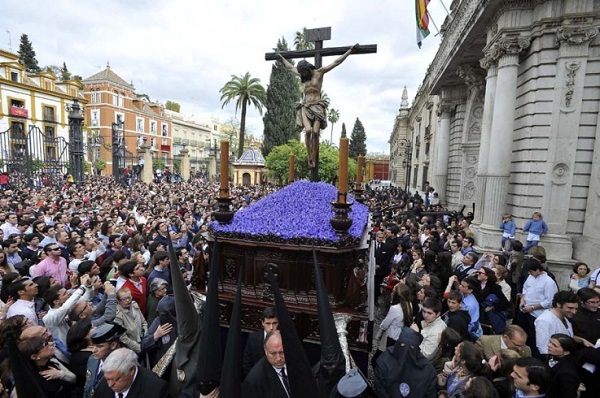 La solemne procesión se iniciará a las 17.00 horas y discurrirá por el siguiente itinerario: Laraña, Cuna, Plaza del Salvador, Álvarez Quintero, Entre Cárceles, Francisco Bruna, Plaza de San Francisco, Granada, Plaza Nueva, Plaza de San Francisco, Hernando Colón, Alemanes, Cardenal Amigo Vallejo, Plaza de la Virgen de los Reyes, Plaza del Triunfo, Miguel Mañara, Plaza de la Contratación, San Gregorio, Puerta de Jerez, San Gregorio, San Fernando, Lonja de la Universidad y entrada en torno a las 21:00h.