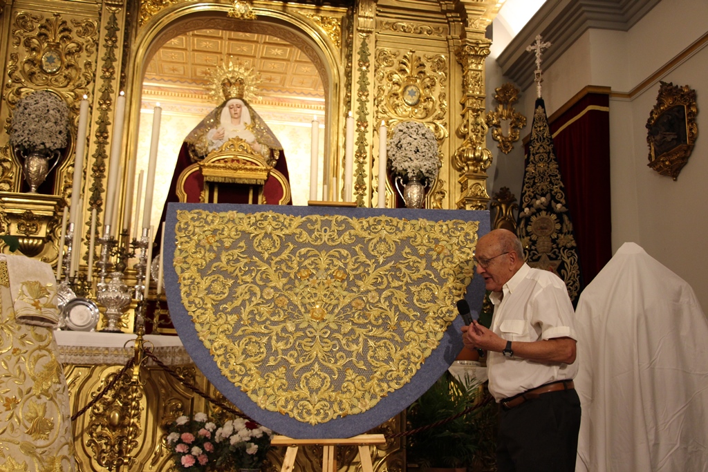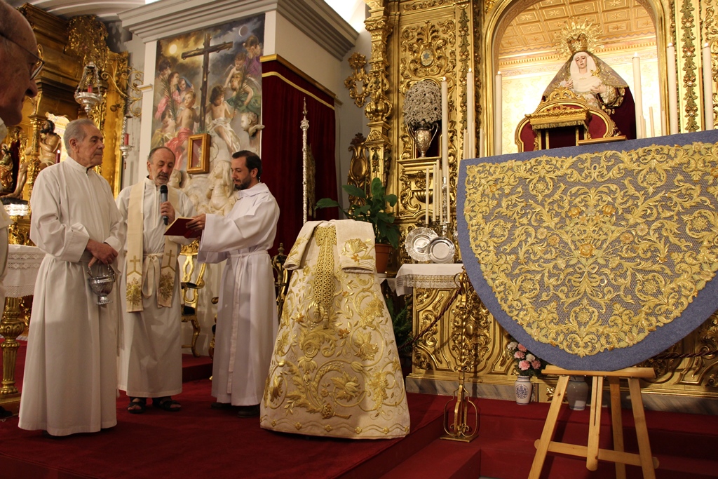 La Hermandad de la Estrella ha bendecido la nueva saya que ha bordado Francisco Carrera Iglesias ‘Paquili’. La pieza viene a recuperar la que la hermandad poseía en torno a 1890 que fue pasada a terciopelo grana y posteriormente a terciopelo azul.