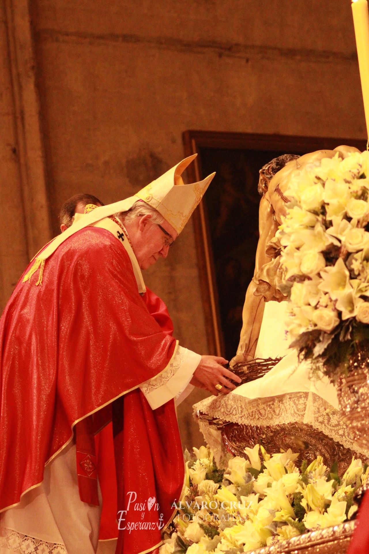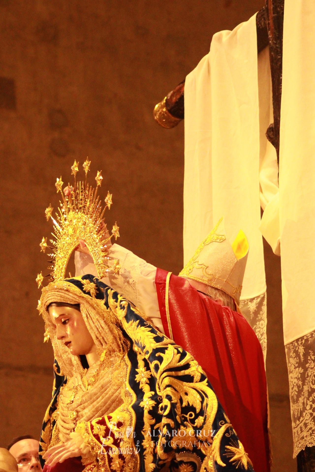 Al finalizar la homilía tuvo lugar la bendición de la corona de espinas y de la diadema de coronación para acto seguido, el señor Arzobispo, las colocó a los pies del Señor de la Misericordia y sobre las sienes de la Virgen de la Piedad, respectivamente. Prorrumpiendo todos los asistentes en un aplauso se expresó el jubilo que supone el momento vivido.
