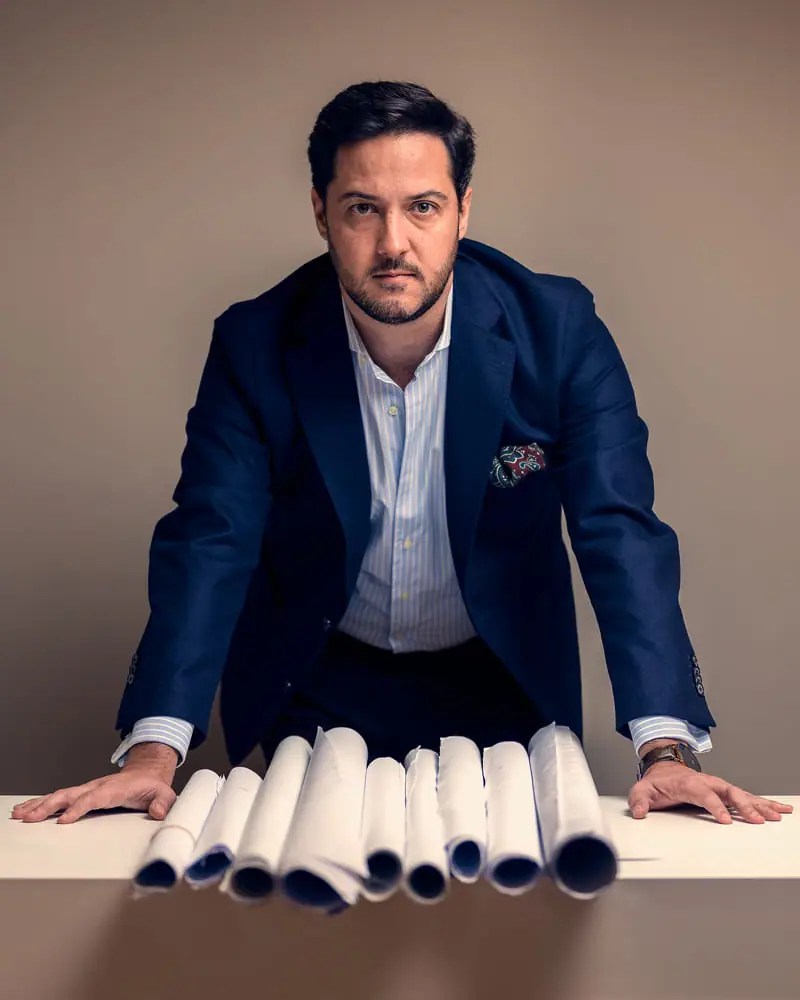 Gonzalo Navarro Ambrojo será quié se encargue del boceto de dicha obra para la corporación de la calle Feria. El diseñador onubense, licenciado en Bellas Artes por la Universidad de Sevilla, en la especialidad de conservación y restauración de bienes culturales, que además posee Máster Universitario en Patrimonio Artístico Andaluz, con estancia en el Instituto Andaluz de Patrimonio Histórico (IAPH); ha realizado diversos diseños para múltiples Hermandades de la ciudad entre las que destacan las sayas para la Vírgenes del Mayor Dolor de la Carretería, la Hiniesta o el Valle, el manto de la Virgen de Guía de La Lanzada, o su proyecto más ambicioso hasta la fecha, el nuevo palio de la Hermandad de La Paz. Es asesor artístico y proyectista de talleres como el de Sucesores de Elena Caro, Manuel Solano o Fernando Calderón, entre otros.