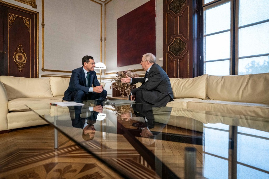 El presidente del Consejo de Hermandades, Francisco Vélez de Luna, ha mantenido un encuentro en el Palacio de San Telmo con el presidente de la Junta de Andalucía, Juanma Moreno, con el que ha abordado, entre otras cuestiones, la celebración del próximo Congreso de Hermandades y Piedad Popular que tendrá lugar este próximo mes de diciembre bajo el lema ‘Caminando en Esperanza’.