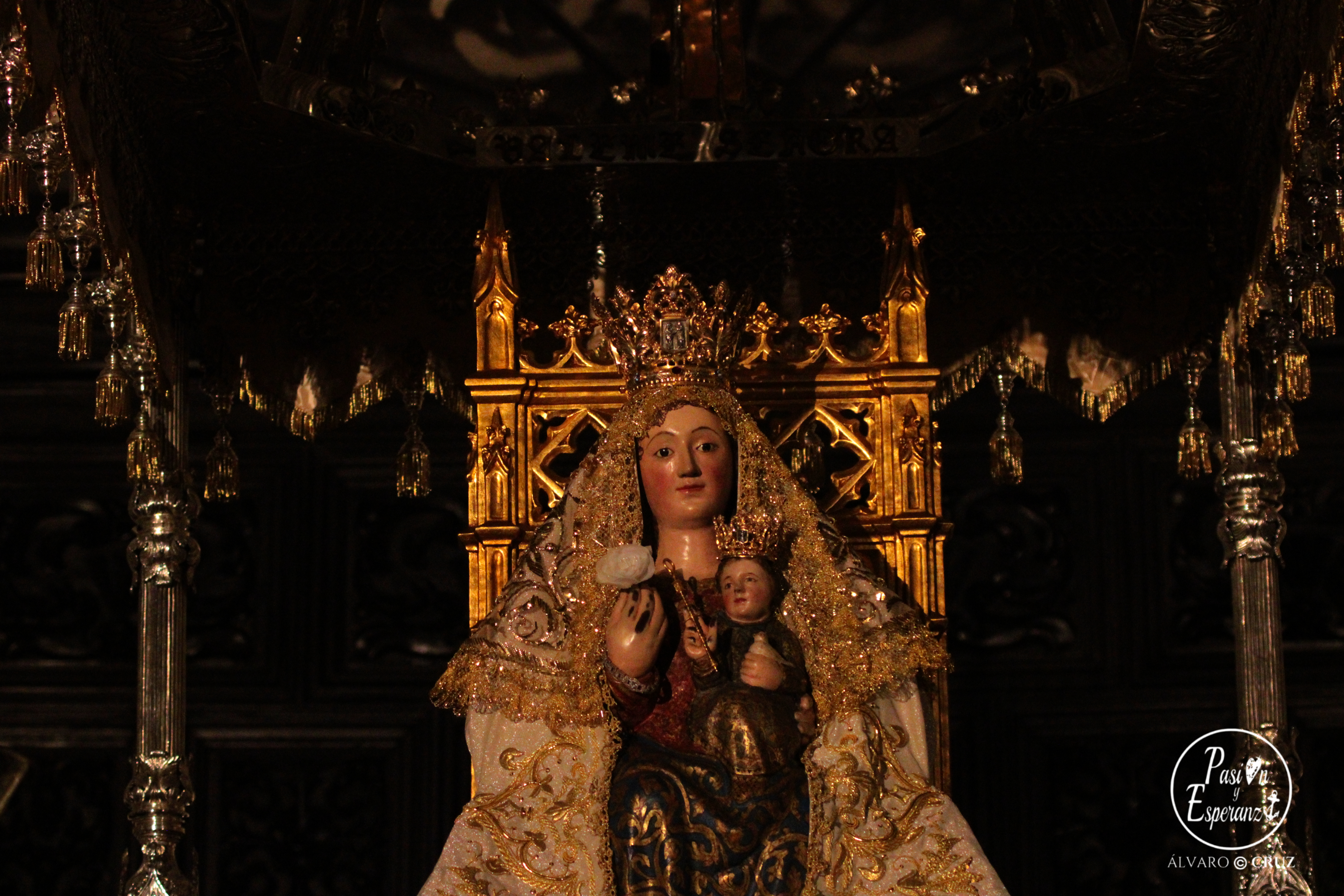 En primer lugar, pasamos por la Parroquia del Sagrario de la Catedral, donde se encuentran las tres imágenes que visitan la capital hispalense: Valme, Consolación y Setefilla.