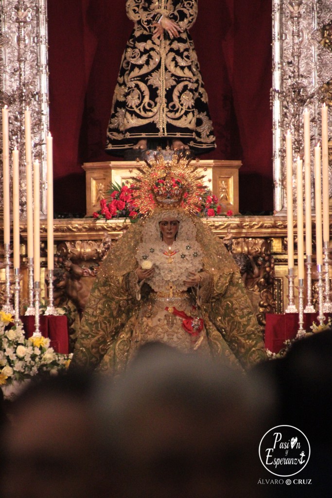 La patrona nazarena se encuentra entronizada en su paso de cara a la salida que tendrá lugar el próximo día 8 de diciembre. ataviada con su manto blanco, luce resplandeciente para traer una parte de Dos Hermanas a Sevilla.