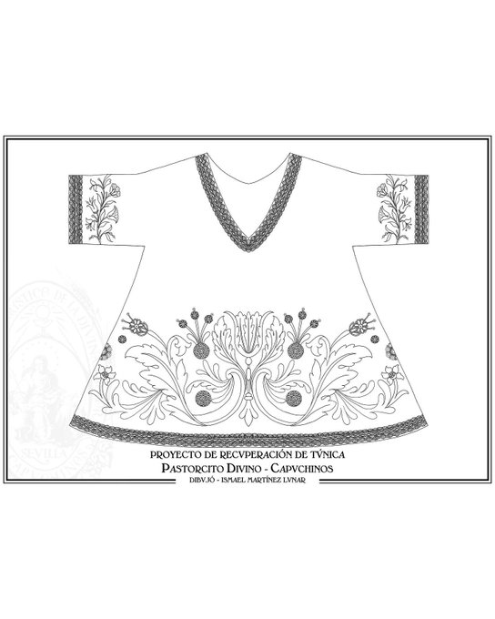 Ahora proyecta reproducir una de las túnicas más antiguas del Divino Pastorcito, realizada entre el siglo XIX y principios del siglo XX, conocida por una fotografía de mayo de 1906.