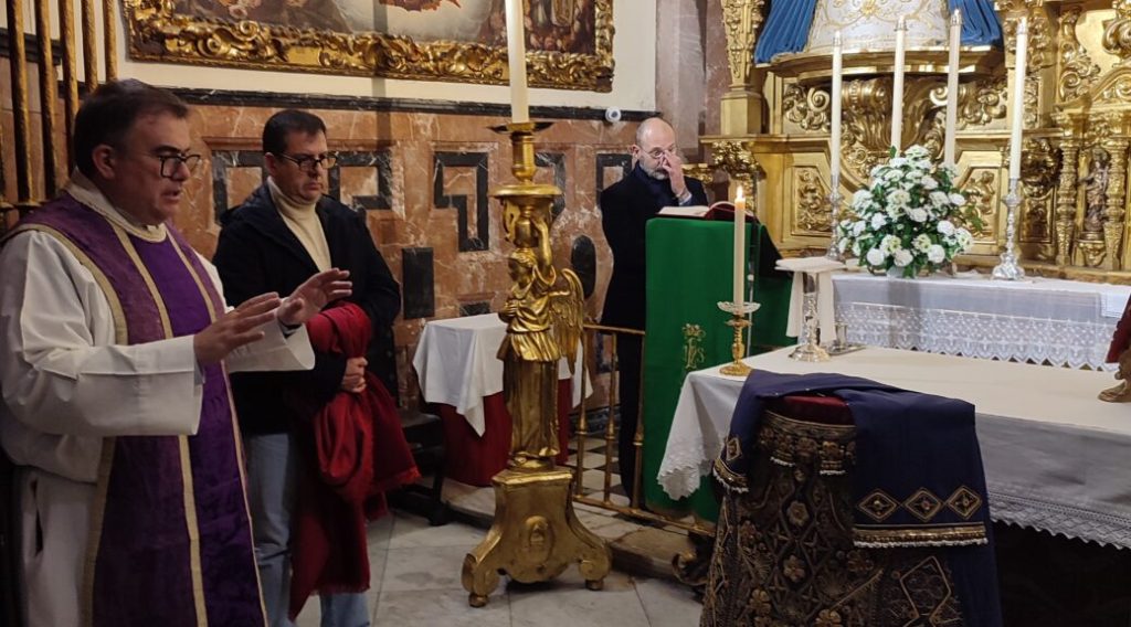 El acto de presentación y bendición de la saya tuvo lugar tras la misa de hermandad, momento en el que se destacó la importancia de esta donación no solo por su valor artístico, sino también por el cariño y devoción que arrastra.