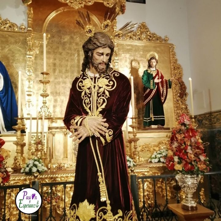 La Hermandad de San Gonzalo ha presentado en la Sala Capitular Baja del Ayuntamiento de Sevilla la nueva túnica bordada de Nuestro Padre Jesús del Soberano Poder ante Caifás, donada por un grupo de hermanos con motivo del 50 aniversario de la talla.