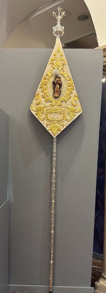 Bajo diseño de Javier Sánchez de los Reyes, con bordados de Jesús Rosado, orfebrería de Ramón León y talla de Fernando Aguado, la corporación torera ha anunciado la adquisición de un nuevo banderín que lucirá, por primera vez, este año.