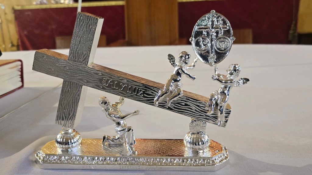 Por su parte, la Hermandad de la Bendición y Esperanza estrena un llamador de plata, donado por la cuadrilla de Hermanos Costaleros, el capataz y sus auxiliares. La pieza representa a un costalero portando una cruz, en cuya estructura puede leerse el lema «Sal y Luz», una declaración de intenciones que resume el espíritu de entrega de quienes llevan sobre sus hombros el peso de la devoción.