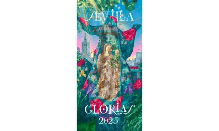 De fondo se ven las gradas de la Catedral, mientras la Asunción Gloriosa sostiene el cielo de Sevilla.