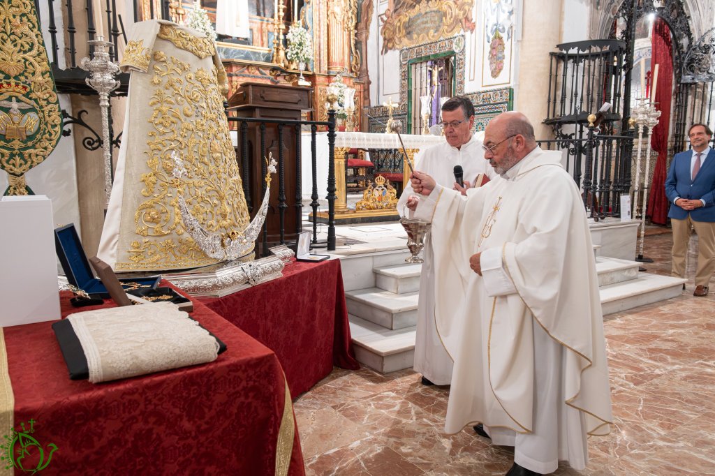 En estas fechas tan señaladas para la Hermandad de la Redención. los hermanos y devotos esperan con gran ilusión la Coronación Canónica de María Santísima del Rocío. Tras la Sagrada Eucaristía de ayer en la Hermandad, el ajuar de la Virgen fue bendecido frente a los hermanos.