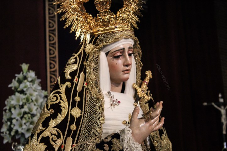 Y la Pastora de Triana ha presentado el cartel oficial de la salida procesional, obra del pintor Rafa Torres. Se trata de una obra realizada en óleo sobre lienzo, con unas dimensiones de 70 centímetros de ancho por 140 de alto. El autor ha decidido alejarse del estilo retratista, evitando centrar el cartel en un retrato de la Virgen, para enfocarse en los parámetros propios de un cartel procesional: un diseño original, un mensaje nítido, el uso del color —con el característico azul Pastora, los dorados y los tonos florales— y una tipografía que, sin ser idéntica a la tradicional del azulejo trianero, evoca y recuerda su esencia.