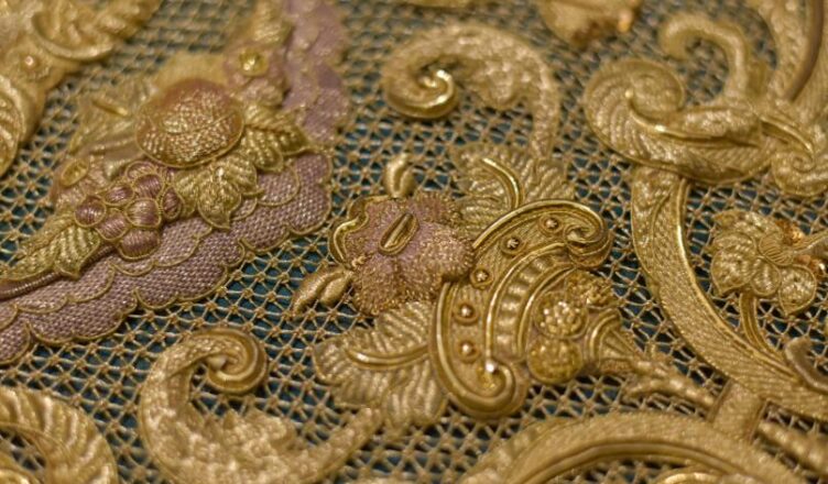 La nueva toca se distingue por su composición de marcada inspiración barroca, en la que cada elemento contribuye a un equilibrio entre movimiento, simetría y riqueza decorativa. Gonzalo Navarro ha concebido un diseño que reinterpreta el barroco sevillano desde una mirada contemporánea, mientras que Manuel Solano ha materializado con maestría los complejos detalles del bordado. La pieza combina un perímetro adornado con motivos florales entrelazados con un espacio central articulado en cinco ejes compositivos. En ellos se suceden acantos, cintas y frutos, bordados con delicadeza para lograr un efecto de plenitud visual característico de este estilo artístico.