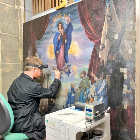 La Esperanza de Triana ubicada en un altar efímero ante las obras de su camarín
