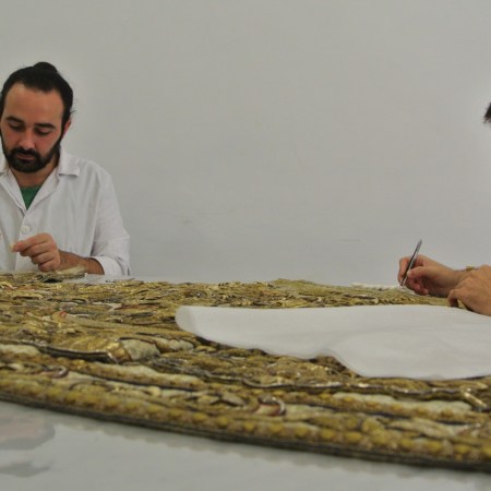 Restaurada la saya de los corbatines de la Esperanza Macarena