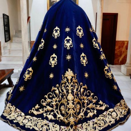 El manto azul de la Esperanza Triana, enriquecido por Jesús Rosado