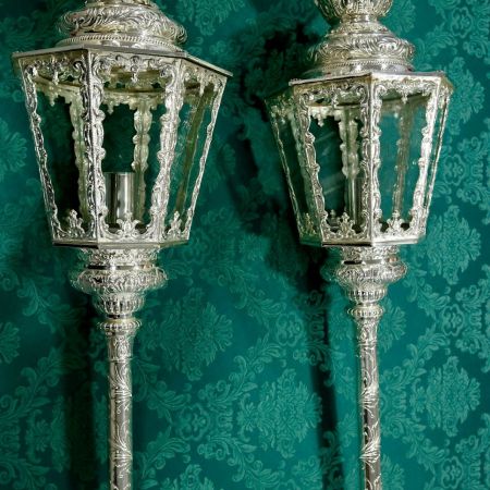 Nuevos faroles en plata de ley para los ángeles del retablo del Cristo de las Tres Caídas